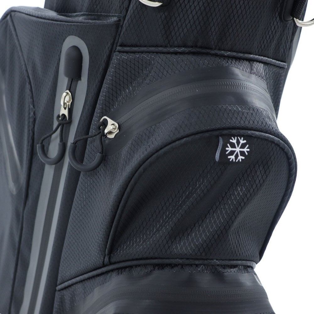Kevyt ja kestävä Ben Sayers Hydra Pro -stand bag pitää mailat ja tarvikkeet kuivina kaikissa sääolosuhteissa. 14-osainen grafiittiystävällinen jakaja, 7 lämpösaumattua taskua ja irrotettava sadesuoja takaavat käytännöllisyyden sateisinakin päivinä.